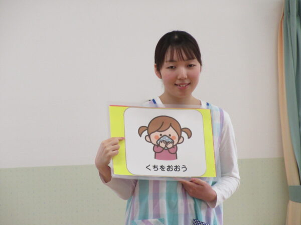 そのあとは、あやめ組のお友だちにお手伝いしてもらって、