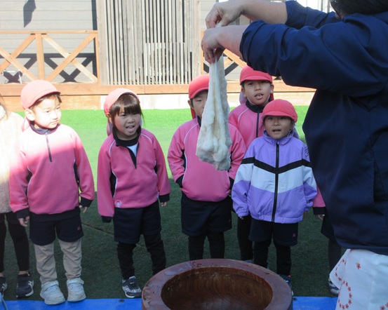 みんなでついたお餅はさくら組さんが鏡餅にしてくれました。