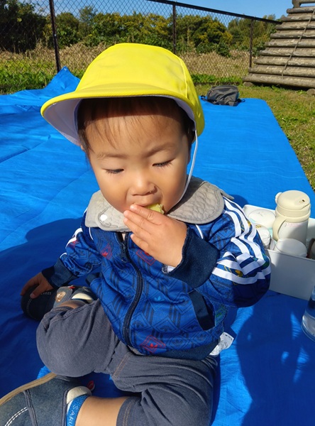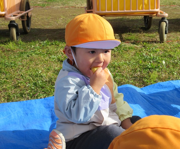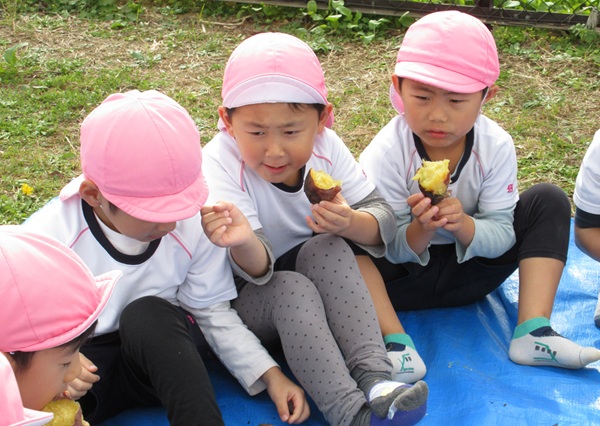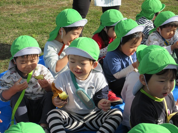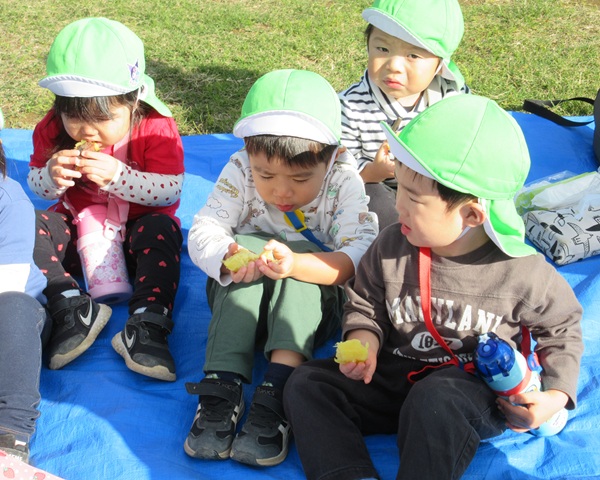 おいしい匂いと共に、焼き芋の完成です!みんなでご一緒に「いただきます👏」
