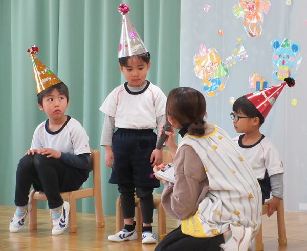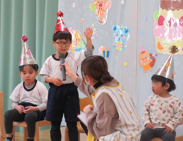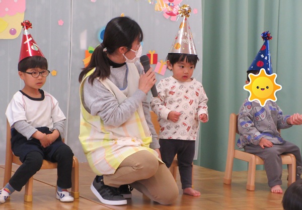 まずはお誕生会🎂 ちょっぴり緊張しながら、誕生児入場!