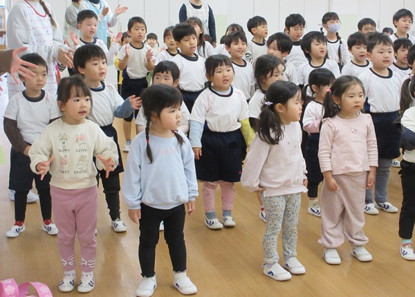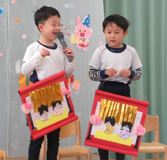 今日は2月生まれのお誕生会と、もうすぐ桃の節句ということで、ひなまつり集会を行いました。