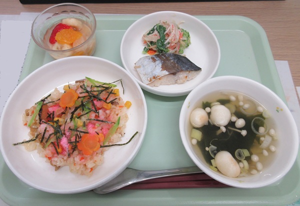 今日の給食は「ちらし寿司」 菜の花サラダがついたひな祭りに相応しい素敵なメニューでした💕