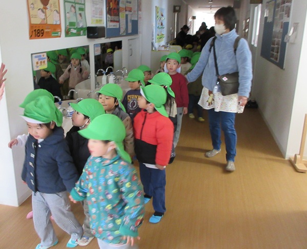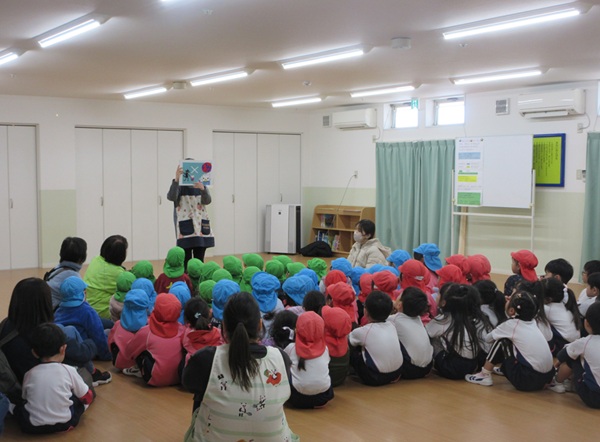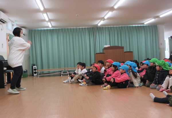 「みんなが産まれてくるずっと前の事だけど、東北で大きな地震やこども園が飲み込まれてしまうほどの大きな波が押し寄せてきて、たくさんの人が亡くなったという大きな災害がありました。いつかまた大きな地震が来るかもしれない。先生たちもみんなを守れるように頑張るけど、みんなもいざという時は自分の命を守る行動をとりましょう!」と園長先生からお話がありました。