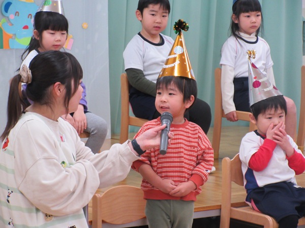 年長組のお友だちは自分でマイクを持ってしっかりお話していました。