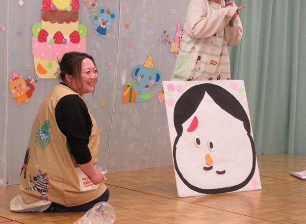 福笑いやけん玉、お手玉にぶんぶんコマ、だるま落とし、羽根つきもしました。
