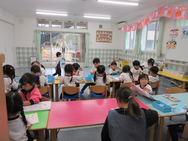 本日は雨☔ 子どもたちはお部屋でのんびり遊んでいます。