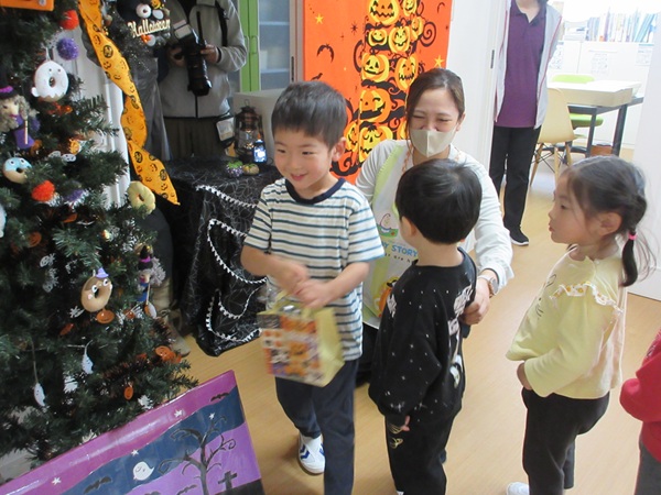 みんな上手に言えました!お菓子をもらえてご機嫌な子どもたち!