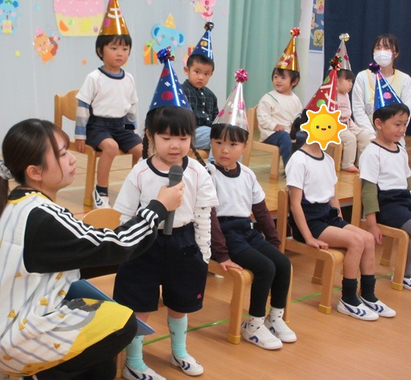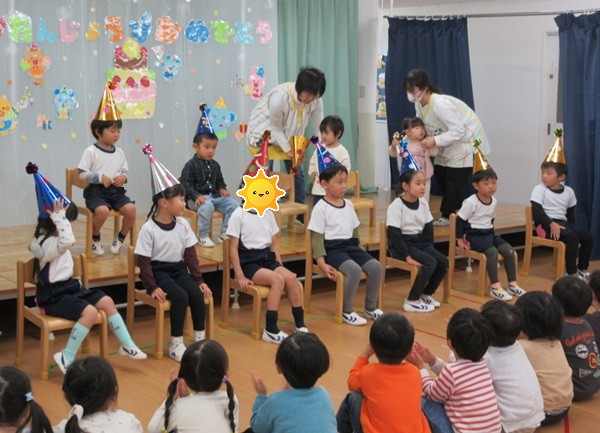 まずは、11月生まれのお誕生会🎂 お友だちの手拍子に合わせて誕生児が入場してきました🎵