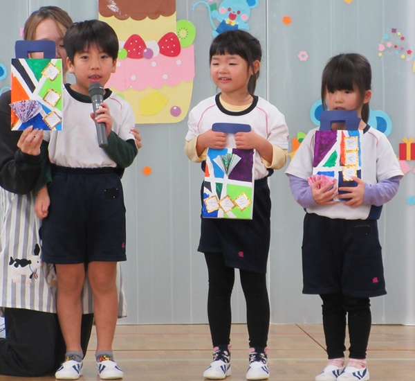 以上児クラスの千歳飴袋制作を紹介したりしました。