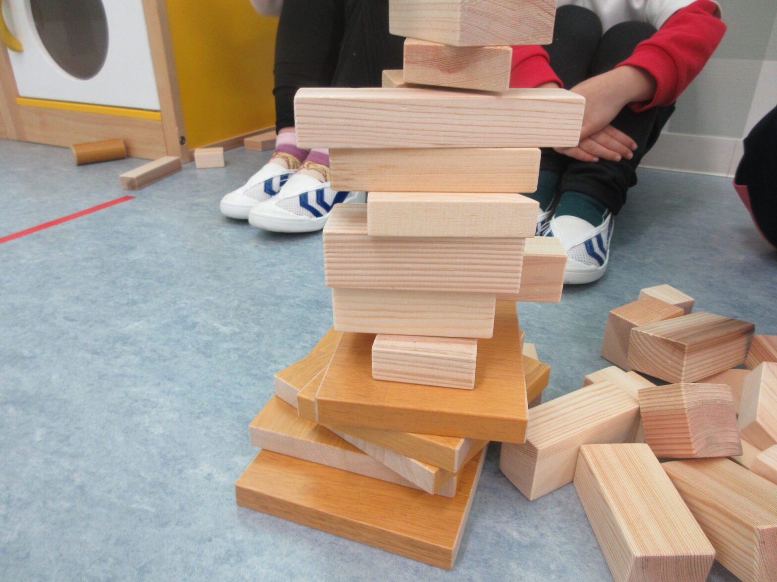 今日は、大工さんが余った木材で作ってくれた「積み木」を使ってゲームをしました!「木のいい匂いがする~」と興味津々な子どもたち♪ テーブルのグループごとに分かれ、どのグループが1番高く積み木を積めるか勝負です✨… 続きを読む 積み木遊びをしたよ