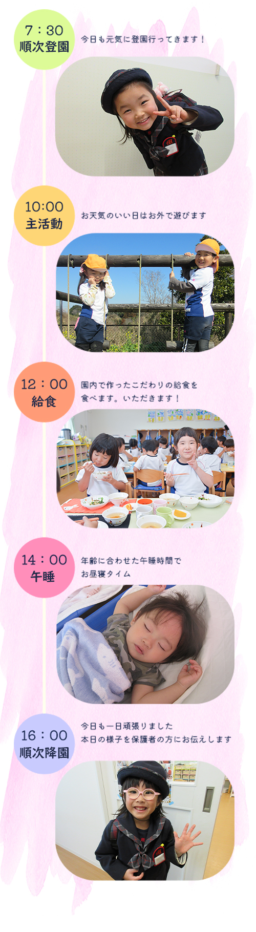 ・登園につきましては、全クラス9:00までの登園をお願いしています。